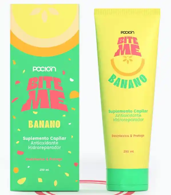 ¡Bite Me es una mascarilla que vas a querer comértela! Está especialmente diseñada para cabellos frágiles, opacos y gravemente dañados por la degradación de proteínas ocasionadas por el exceso de alisados, decoloraciones, exposición constante a altas temperaturas y envejecimiento capilar. Su ingrediente activo 99,5% de origen natural, extraído del Banano con las combinación de aceites de Macadamia, Algodón y Aguacate, logran reponer las proteínas perdidas a diario para que tu cabello esté sano, fuerte, hidratado y protegido, tanto en la estructura interna como externa del cabello.