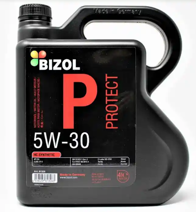 "Descripción del producto: Bizol Protect 5W-30, es un aceite para motor de alto rendimiento y que ayuda a ahorrar combustible, con aceites de base sintética, un índice alto de viscosidad y una elección equilibrada de aditivos avanzados. Está formulado para la lubricación de motores modernos de gasolina en vehículos para pasajeros, camionetas, y SUVs. Presentación: 4Lts. Vehículo: Livianos, camionetas y SUV´s. Recomendación: Vehículos con edad menor a 5 años. Base: HC - Sintético Motor: Gasolina Ventajas: -Ahorro óptimo de gasolina. -Propiedades excelentes de protección contra el desgaste y la corrosión. -Efectivo para motores de gasolina (con convertidores catalíticos y turbocargadores). Clasificaciones y especificaciones API SN | ILSAC GF 5 GM DEXOS 1 Gen. 2/6094 M | Ford WSS-M2C-946-A | Chrysler MS-6395 | Toyota | Honda | Nissan | Mazda | Hyundai"