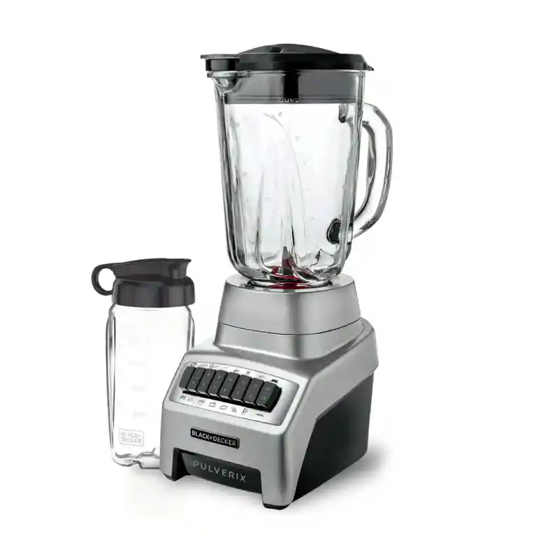 Flexibilidad, Eficacia y Durabilidad—características destacadas de la Licuadora Pulverix™ BLACK+DECKER™ para preparar sus alimentos favoritos con toda confianza. Un motor de 700 watts de potencia máxima* trabaja eficazmente con cuchillas poderosas de 6 puntas en acero inoxidable, más 12 velocidades con pulso que ayudan a pulverizar hielo a nieve y triturar los ingredientes más duros, convirtiéndolos en deliciosas sopas y purés, refrescantes batidos de frutas o granizados y hasta migas de pan o galletas con la consistencia perfecta. Diseñada con un sensor IntelliFuse™ para proteger el motor contra recalentamiento y un poderoso acople de metal, esta licuadora será su mejor aliado en la cocina por largo tiempo. Características destacadas Potencia de 700 Watts 12 velocidades + función de pulso Jarra de vidrio de 1.5 Lt con tapa de doble abertura Poderosa cuchilla 6 aspas de acero inoxidable Inteli-Fuse™ protege el motor contra recalentamiento