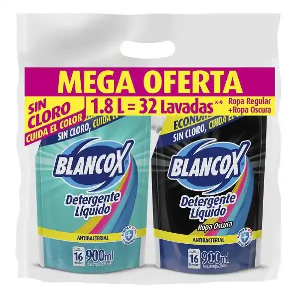 Kit Blancox Contiene 2 Unidades. Detergente Antibacterial 900 mL + Ropa Oscura Liquida 900 mL.