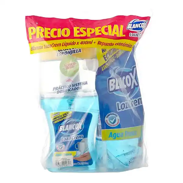 Contiene 2 Unidades. Lavaloza Agua Fresca Lozacrem Líquido 400 mL + Repuesto Recipiente 380 mL.