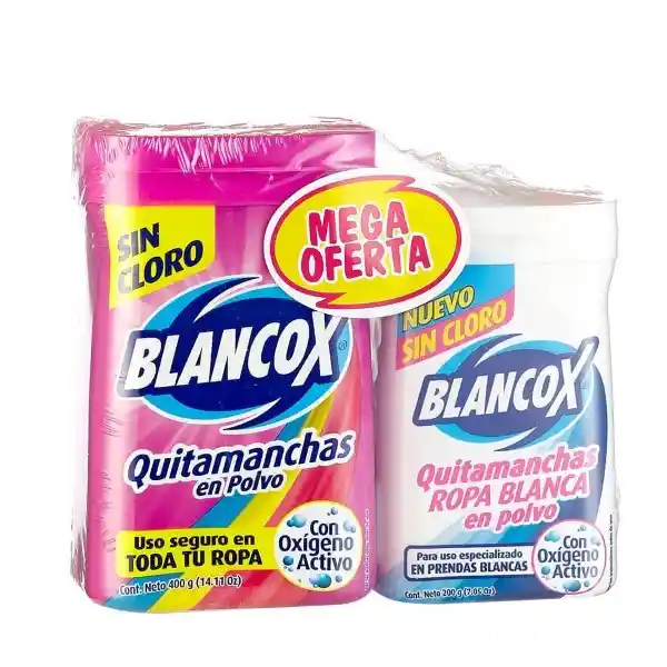 Kit Blancox Contiene 2 Unidades. Quitamanchas en Polvo 400 g + Quitamanchas Ropa Blanca 200 g.