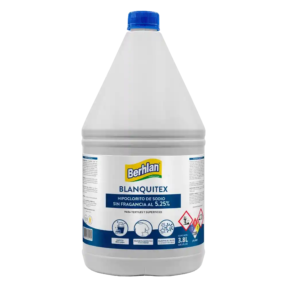 El Blanqueador Blanquitex de Berhlan en presentación de 3.8 litros está formulado para ofrecer una acción desinfectante potente y un efecto blanqueador eficaz sobre ropa blanca y superficies del hogar. Ideal para eliminar manchas difíciles, desinfectar espacios y mantener la higiene en ambientes domésticos e institucionales.