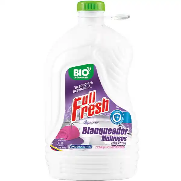 El Blanqueador Fullerpinto 3785cc es la solución perfecta para mantener tus espacios impecables y libres de gérmenes. Con su fragancia a lavanda, podrás disfrutar de un ambiente fresco y limpio en todo momento. Su fórmula sin cloro es ideal para usar en paredes, pisos, telas, baldosas, cerámicas y otras superficies, garantizando una limpieza profunda y efectiva. Gracias a su formato líquido y su práctico envase en botella, el Blanqueador Fullerpinto es fácil de usar y almacenar. Con tan solo unas gotas, podrás eliminar manchas y bacterias de manera rápida y eficiente. Además, su versatilidad lo convierte en un producto indispensable para el cuidado y mantenimiento de tu hogar u oficina. El Blanqueador Sin Cloro Full Fresh 3785 Ml de la marca Fullerpinto es la opción ideal para aquellos que buscan un producto de calidad y confianza.