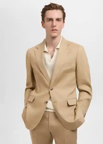 Bolsillo de Ribete en el Pecho Bolsillos Interiores Colección Sastrería Dos Aberturas en la Parte Posterior Del Bajo Dos Bolsillos de Solapa en la Parte Delantera el Modelo Mide 190 cm y Lleva Una Talla 50 Forro Interior Manga Larga Con Puños Abotonados Slim Fit Solapas de Muesca y Ojal Tejido 100% de Lino - 87075920_08.