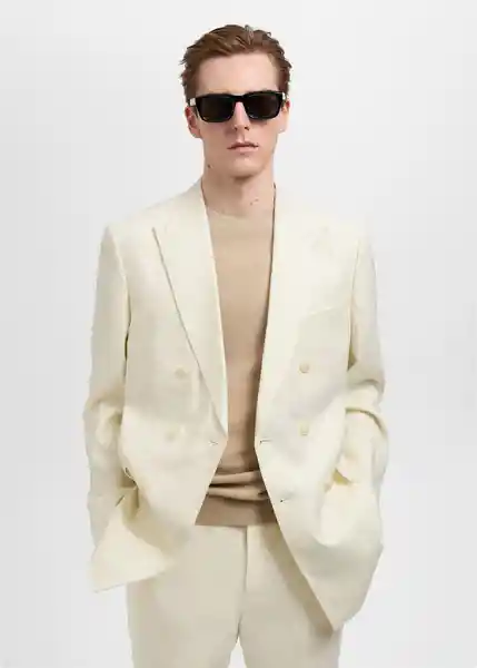 Bajo Redondeado Bolsillo de Ribete en el Pecho Colección Sastrería Diseño Cruzado Con Cierre Delantero de Doble Botonadura Doble Abertura Posterior en el Bajo Dos Bolsillos de Ribete y Solapa en la Parte Delantera el Modelo Mide 190 cm y Lleva Una Talla 50 Puños de Tira Abotonada Slim Fit Solapas de Pico Tejido 100% de Lino - 87025931_04.
