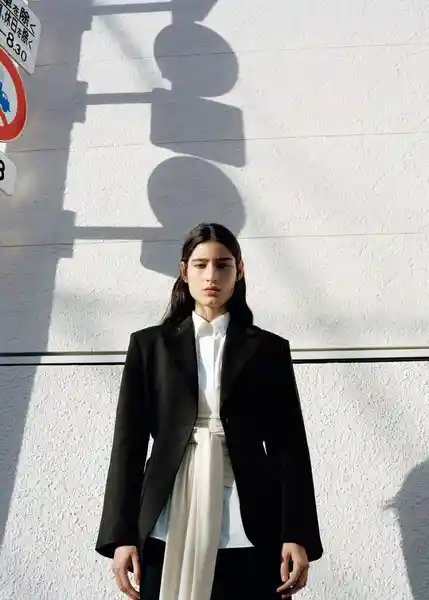 Cintura Fruncida Colección Selection Cuello Pico Con Solapa Diseño Entallado Dos Bolsillos de Parche Laterales Forro Interior Manga Larga Manga Larga Con Puños Abotonados Sin Cierre Solapas Con Muesca Tejido Mezcla Lyocell - 27054446_99.