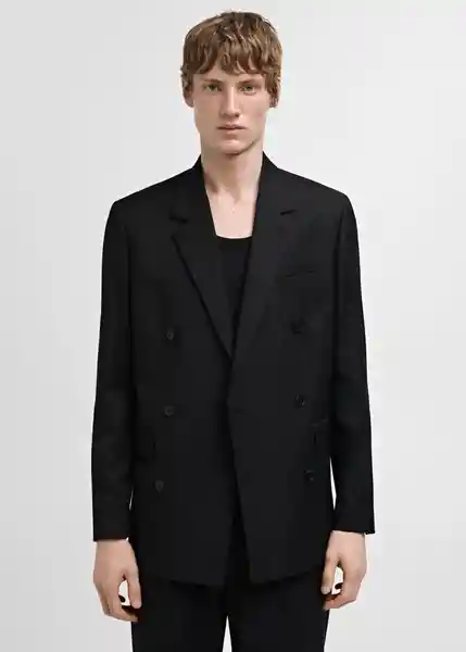 Bolsillo de Ribete en el Pecho, Bolsillo Interior, Cierre de Botones, Cierre Delantero Con Botones Cruzados, Colección Sastrería, Diseño Cruzado, Doble Abertura Posterior, Dos Bolsillos de Solapa en la Parte Frontal, el Modelo Mide 187 cm y Lleva Una Talla 50, Forro Interior, Manga Larga Abotonada, Regular Fit, Solapas de Muesca y Ojal - 77010581_99.