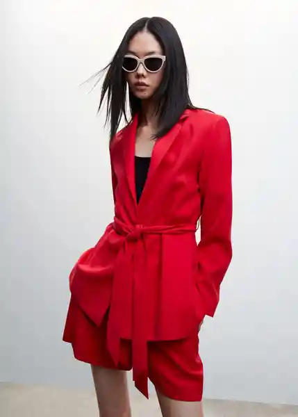 Colección San Valentín Cuello Pico Con Solapa Diseño Recto Lazo Ajustable en la Cintura Manga Larga Solapas Con Muesca Tejido Fluido Total Look Trabillas - 47071502_70.