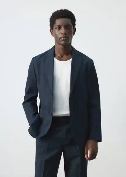 Bolsillo Interior Cierre Delantero Con Botones Dos Bolsillos de Parche Laterales Sin Forro Interior Slim Fit Solapas de Muesca Tejido Mezcla de Lyocell Algodón y Lino - 27025945_56.