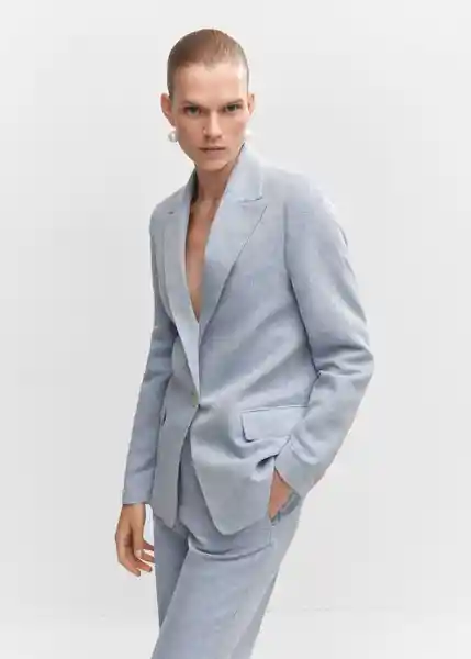 Cierre de un Botón Cuello Pico Con Solapa Diseño Recto Dos Bolsillos de Solapa Forro Interior Hombreras Manga Larga Con Puños Abotonados Tejido Mezcla de Algodón Tejido Mezcla de Lino Total Look - 47059202_50.