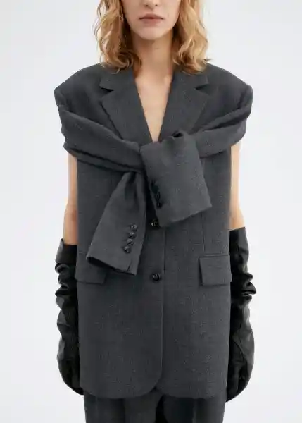Cierre de Doble Botonadura Colección Selection Costuras Decorativas Cuello Pico Con Solapa Diseño Largo Diseño Recto Dos Bolsillos Delantero de Ribete y Solapa Forro Interior Looks de Oficina Manga Larga Con Abertura de Cremallera en Los Hombros Tejido Fluido - 57096014_92.