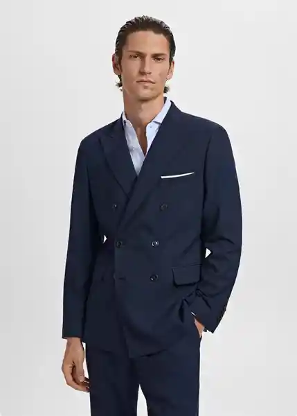 Bajo Con Aberturas Laterales Bolsillo de Ribete en el Pecho Colección Sastrería Diseño Cruzado Con Cierre Delantero de Doble Botonadura Dos Bolsillos de Ribete Con Solapa Laterales el Modelo Mide 190 cm y Lleva Una Talla 40 Puños de Tira Abotonada Slim Fit Solapas de Muesca y Ojal - 17025150_56.