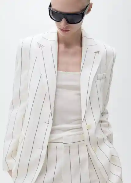 Bolsillo de Ribete en el Pecho Cierre de Botones en la Parte Delantera Cuello Pico Con Solapa Diseño Recto Dos Bolsillos de Solapa en la Parte Frontal Estampado de Rayas Estilo Traje Hombros Pronunciados Solapas Con Muesca Total Look - 87047195_01.