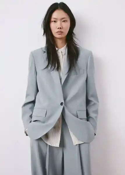 Bolsillo de Ribete en el Pecho Cierre Delantero de Botón Cuello Pico Con Solapa Diseño Recto Dos Bolsillos de Solapa Laterales Estilo Traje Forro Interior Manga Larga Con Puños Abotonados Solapas Con Muesca Total Look - 27044789_52.