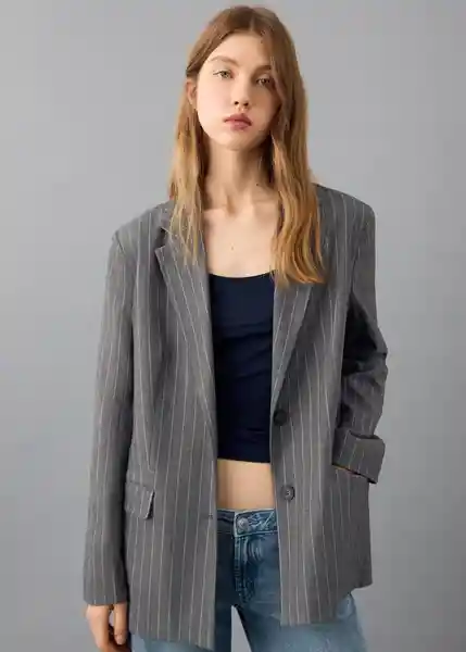 Cierre Delantero de Botón Con Forro Interior Cuello Solapa Diseño de Rayas Dos Bolsillos Delanteros Estilo Traje Tejido Poliéster Total Look - 27091520_92.