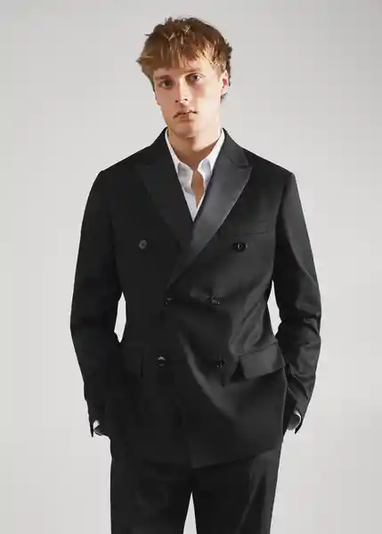 Bolsillo del Ribete en el Pecho Bolsillo Interior Diseño Corto Diseño Cruzado Dos Bolsillos del Solapa Laterales el Modelo Mide 185 cm y Lleva Una Talla 50 Forro Interior Slim Fit Solapas Satinadas Tejido Mezcla del Poliéster Reciclado - 47030005_99.