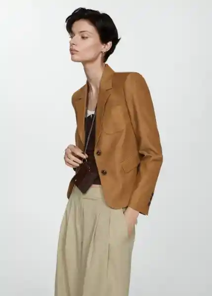 Bolsillo de Parche en el Pecho Cierre de Dos Botones en la Parte Delantera Cuello Pico Con Solapa Diseño Recto Dos Bolsillos Delantero de Ribete y Solapa Forro Interior Looks de Oficina Manga Larga Con Puños Abotonados Solapas Con Muesca - 67017149_31.