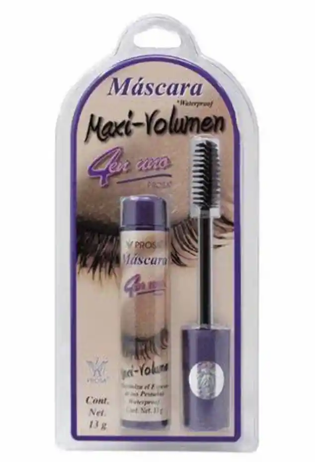 BLISTER pestañina prosa maxi volumen, maximiza el espesor de tus pestañas, su fórmula es aprueba de agua, aporta una intensidad única de volumen, y tiene cuatro ingredientes naturales para cuidar tus pestañas.