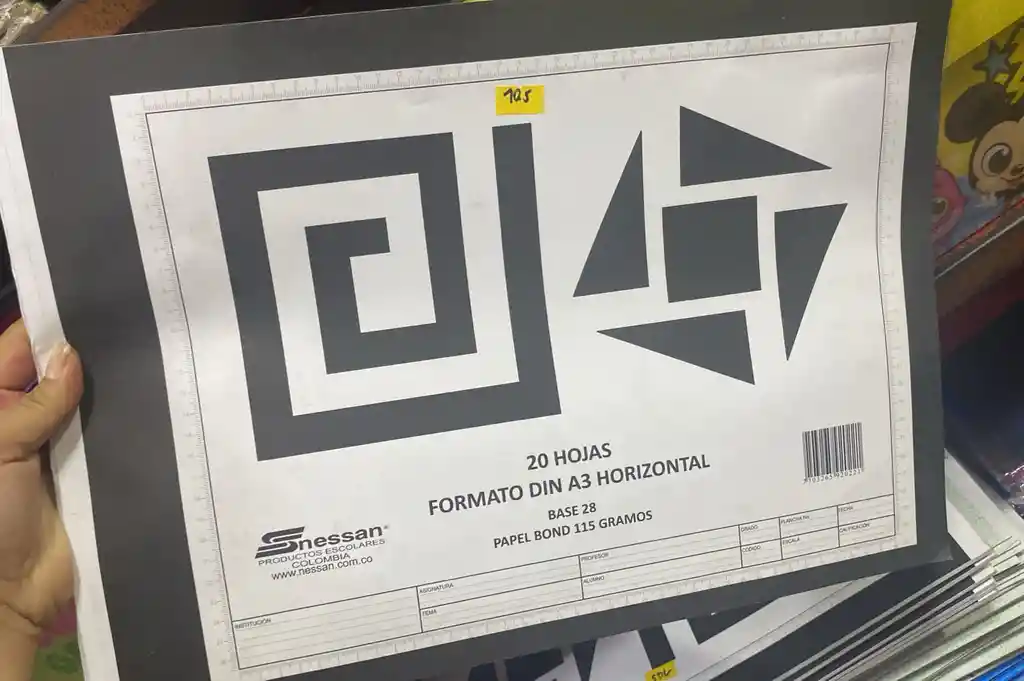Block de dibujo Nessan diseñado para dibujo técnico y arquitectura. Se trata de un bloc con hojas normalizadas y rotuladas que facilitan la organización de proyectos escolares y profesionales. Sus especificaciones principales son: Formato: DIN A3 horizontal, con dimensiones de 29.7 x 42.0 cm. Papel: Bond de 115 gramos, lo que proporciona una base resistente (Base 28) para diferentes técnicas de trazado. Contenido: Contiene 20 hojas blanc