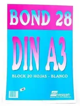 block de papel bond marca Nessan. Producto: Block de papel Bond 28 Nessan. Tamaño: DIN A3 (29.7 x 42 cm). Contenido: 20 hojas blancas.