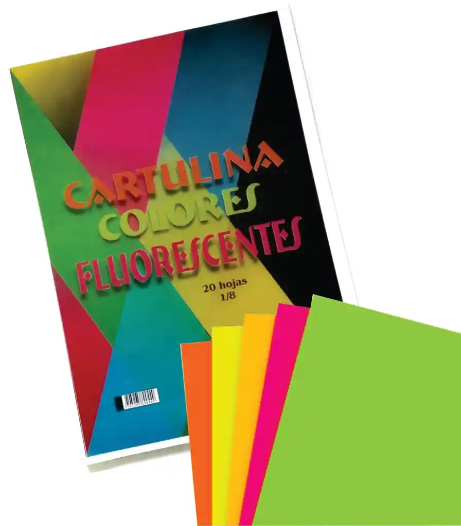 Cartulina fluorescente de 150 grs, tamaño 1/8 para elaboracion de carteleras, trabajos escolares etc.20 hojas TAMAÑO25 x 35 cm