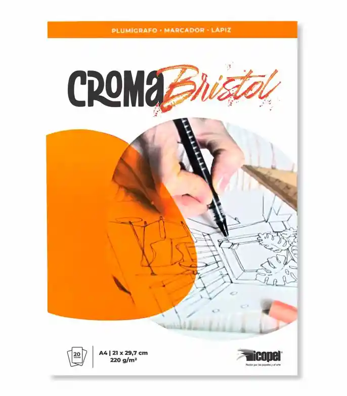 "CROMA BRISTOL, es un block de cartulina premium extra blanca, con un acabado muy liso y suave. Libre de ácido, pH neutro. Certificado FSC®. Ideal para: *Lápiz *Pluma *Tinta *Lápiz de Color *Plumígrafos *Marcadores"