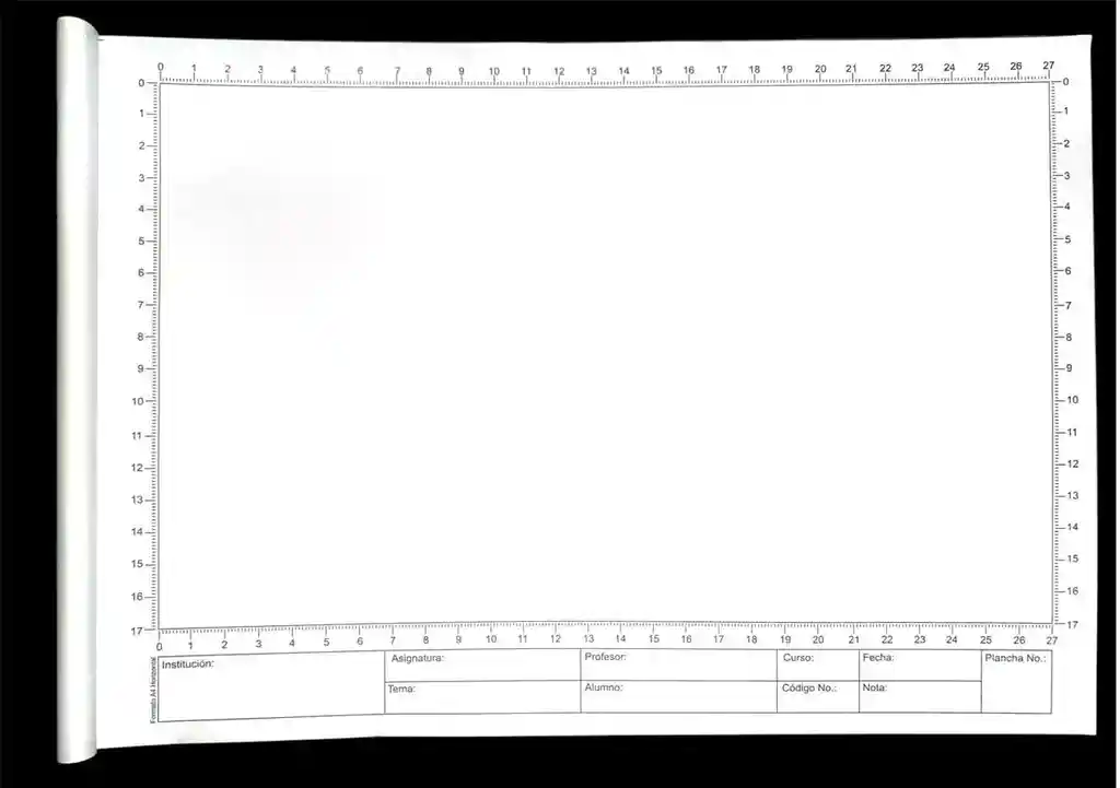 "El formato de plancha sencilla que presenta, facilita el inicio en el campo del dibujo técnico. Ideal para trabajos escolares y universitario. Block de dibujo rotulado, tamaño 21 x 29.6 cm. Comercializadora Loaiza