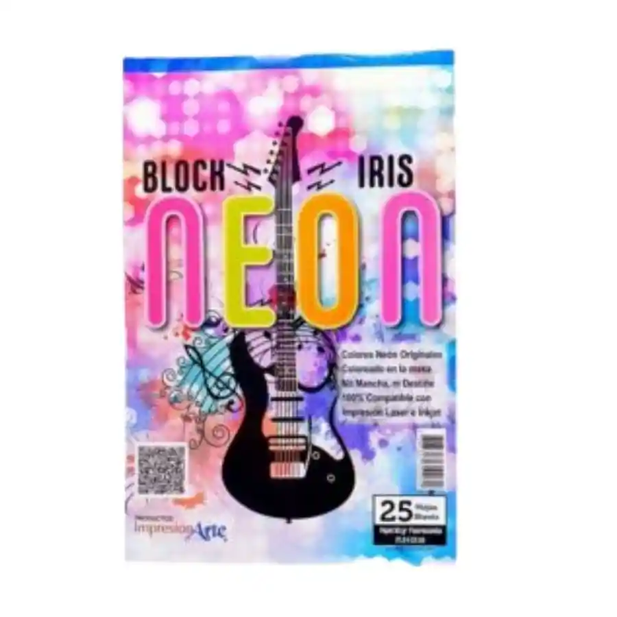 Block de hojas de colores neón, sin lineas, tamaño carta, contiene 25 hojas, colores de gran intensidad