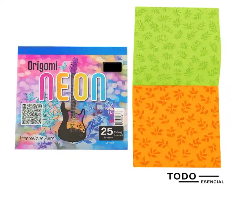 Block Origami Neón 15 X 15 Cm - Diseño por ambos lados de la hoja