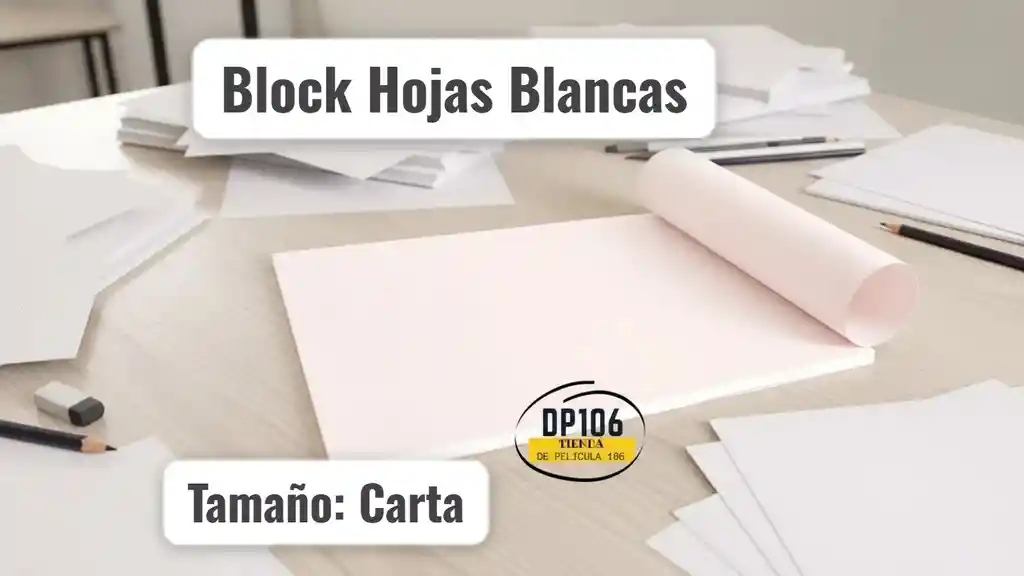 Block carta • Block fabricado en papel bond de 56 gramos • Carátula en cartulina esmaltada • 70 hojas sin rayas • Tamaño: 20.8 x 27.8 cm Medidas: 27.8 cm x 20.8 cm x 0. 6 cm en empaque