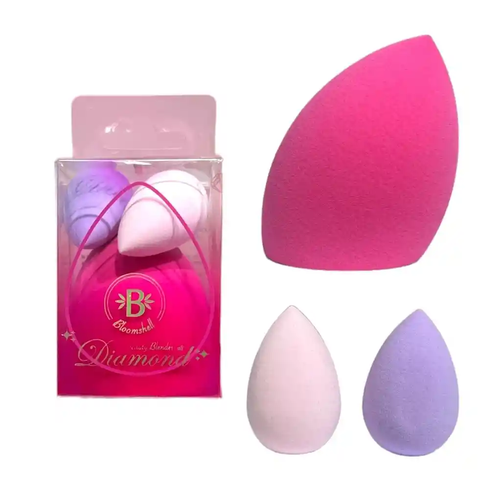 BEAUTY BLENDER X 3 1 GRANDE Y 2 MINI GARANTIZAN UNA APLICACION RAPIDA Y FACIL.