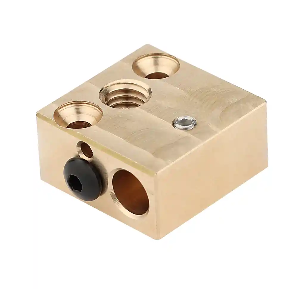 SOPORTA HASTA 500 °C DE TEMPERATURA. Material: LATON (ALEACION BRONCE ZINC). Tamaño del bloque de calentamiento: 20 mm x 20 mm x 10 mm Compatible con: CR10 / CR10S / CR10S PRO / Ender 3 / Ender 3S. Orificio de montaje de la boquilla: rosca de tornillo M6. Orificio de montaje del tubo de calefacción: 6 mm. LA COMPRA INCLUYE: 1 X BLOQUE CALENTADOR HB-CR10-CP BRONCE CR10 ENDER M6