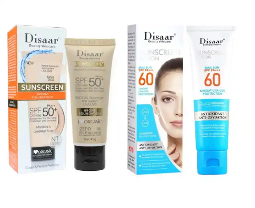 BLOQUEADOR COLOR SPF50 + BLOQUEADOR LOTION SPF60 Contiene: - Bloqueador Color SPF 50 Frasco de 40g - Bloqueador Lotion SPF 60 Frasco de 50ml. 1. Bloqueador Color SPF 50 Protector solar SPF 50, proteccion instantanea, color natural adaptable al tono de piel, sin aceite. Proteccion solar, proteccion perfecta, cobertura hidratante. Producto Organico 2. Bloqueador Lotion SPF 60 Ligero, no grasoso. Potente bloqueo UV. Este protector solar ligero y transparente es de absorción rápida con tecnología Dry-Touch para un acabado mate no graso que deja la piel limpia. Crema para después del afeitado, humectante, protector solar y antienvejecimiento en increíblemente ligera y decididamente sin perfume, es fácil de aplicar y absorbe rápidamente sin dejar grasa. Una combinación de los ingredientes naturales más poderosos de la naturaleza trabajan y reparan la piel. Mejora la elasticidad de más daños y apoya la eliminación de estrías. Características avanzadas SPF60+ PA +++ contra el daño solar y está repleto de ingredientes nutritivos para ayudar y mejorar el tono de la piel RESISTENCIA SUPERIOR VS. Sudor y agua: desde diversión familiar hasta competencia incondicional, el protector solar proporciona una fuerte protección solar que se mantiene en su lugar para que puedas jugar.