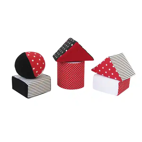 Nuestros Bloques Blandos Por 6 Piezas Están Fabricados en Espuma, Tela Antialérgica y Antifluido, Sus Colores, Blanco, Negro y Rojo Estimulan Los Sentidos Del Bebé y Fomentan Los Procesos de Estimulación Temprana, Incluye Sonajero. Medidas Aproximadas Por Piezas: Más Pequeña: 8 x 4 cm. Más Grande: 8 x 8 cm.