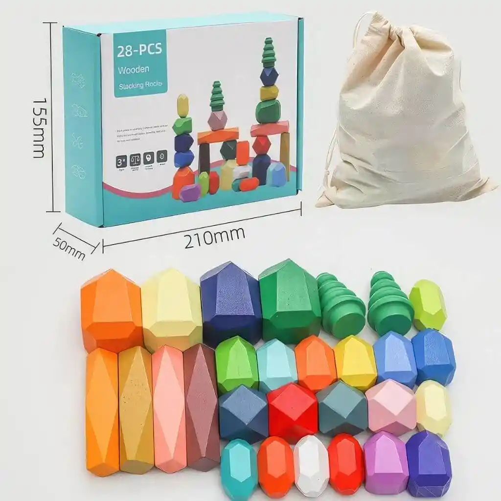 Bloques de poliedro, diferentes en tamaño, color y peso. A través de formas, la clasificación ayuda a desarrollar el reconocimiento de color, habilidades de apilamiento, reconocimiento de formas y habilidades de coordinación mano-ojo. Hace que el juego de apilamiento sea más desafiant 【Habilidad práctica de pensamiento creativo】Los juguetes apilables de bloques ayudan a desarrollar la imaginación espacial, el razonamiento espacial, el pensamiento lógico. Juegos independientes, juegos para dos jugadores. Perfecto para que tus hijos apilen varios edificios. Juguetes de regalo ideales para el bebé en camino al crecimiento Juegos familiares interactivos perfectos: adecuados para jugar en casa o actividades al aire libre. Tu hijo se enamorará profundamente de los juguetes de bloques de madera apilables. Tamaño de bloque correcto, fácil de agarrar, no se colapsará fácilmente durante la creación. Puente ideal de comunicación entre niños y padres