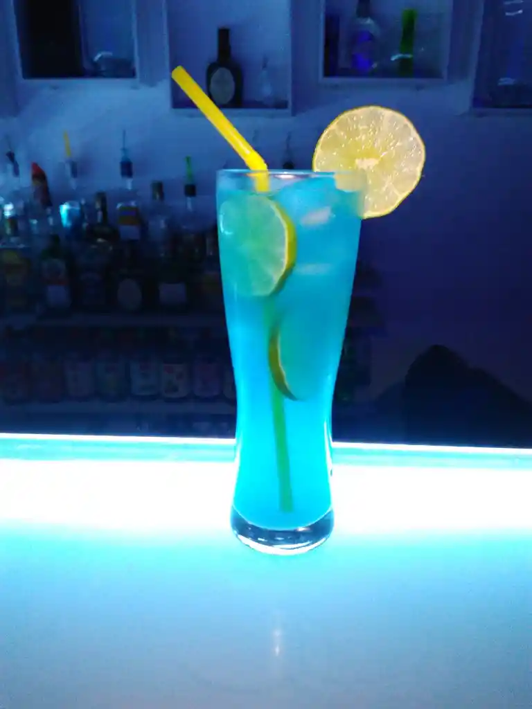 Coctel Refrescante De Ron Y Blue Curazao Con Notas Ácidas Y Dulces.. .