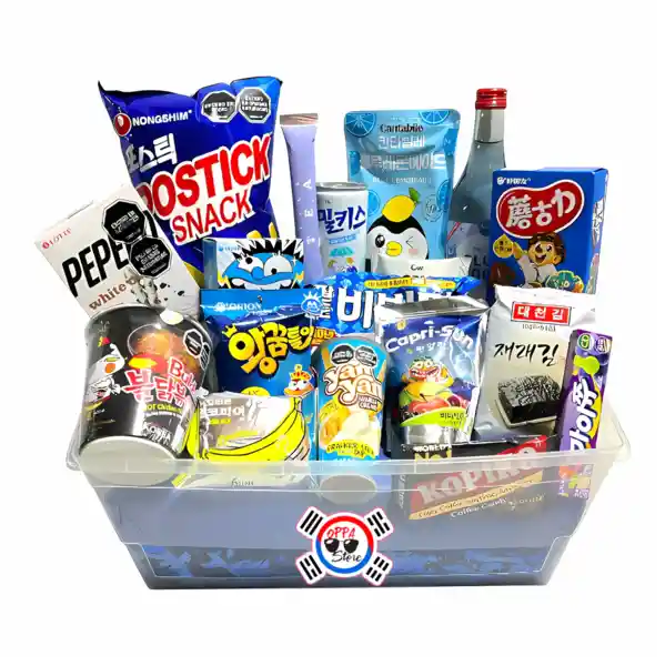 Exclusivamente desde Corea, llega el mejor sabor que describe a todo el pais Asiatico. Incluye: 18 productos Snack Coreano Sabor al Azar Ramen Bibimbap con Manzana – Picante Cup Buldak Ramen Original – Picante Choco Boy Honguitos de Chocolate y Avellana Bebida en Sobre Coreana Té Helado de Limonada Azul x 230 ml Pepero de Cookies and Cream Bebida Milkys Caramelo Coreano Masticable de Soda Acida x 42gr Gomitas Coreana Gusanitos x 67gr Yan Yan de Vainilla Choco pie de Banana Fruna Coreana Crown Maichu Uva x 44gr Caramelo de Café en Sachet de 8 unidades x 32gr Alga Crujiente Wangga a la Parrilla x 4.5 gr Te Coreano Instantánea Choco Fresa x 240gr Capri Sun Coreano Tutti Frutti + Victamina C x 200ml Galleta Crow Coreano Chocolate 2 Palitos desechables