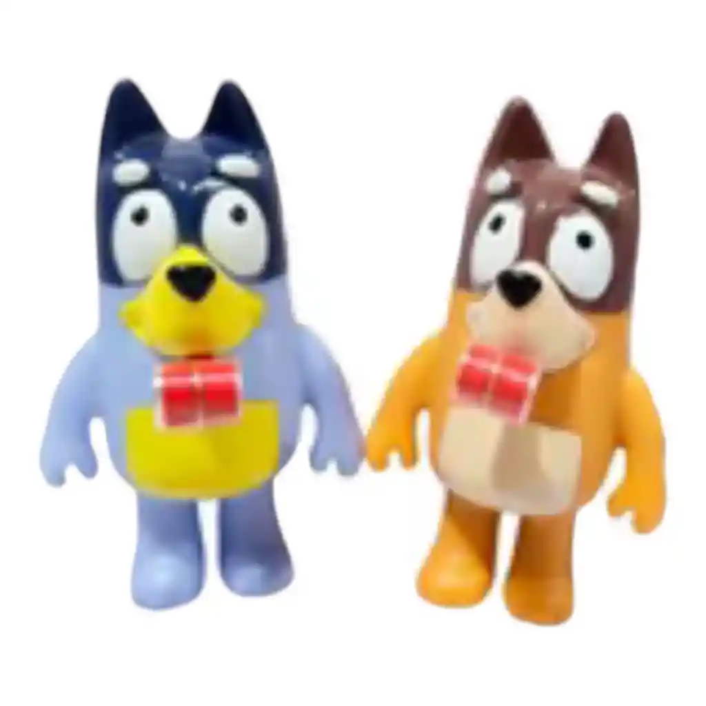 Bluey Con Sibato al apretarlos, lanzan un espanta suegra (lengüita de fiesta). Son juguetones, coloridos y súper chistosos.