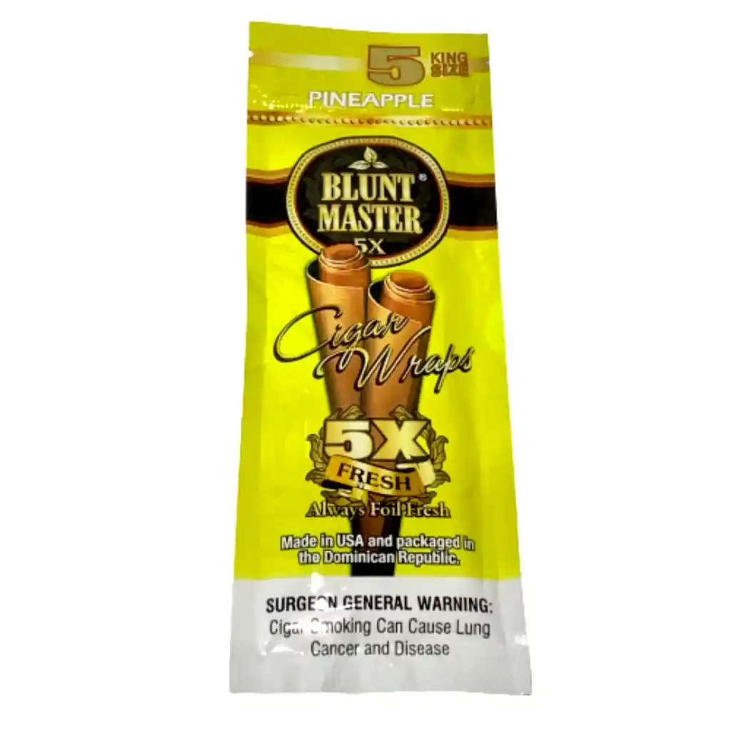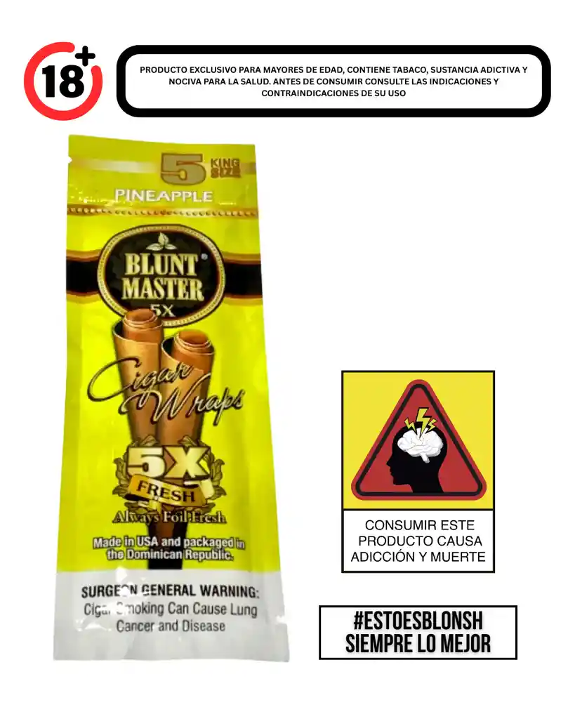 Es un envoltorio de papel laminado que contiene 5 papeles de tabaco, enrollados en forma de espiral, similar a los papeles de fumar, pero estos son más resistentes, con una combustión más lenta, uniforme y aromática, permitiendo una fusión perfecta entre tu tabaco favorito, combinado con el delicioso sabor exótico de tu elección, logrando hacer tu experiencia inigualable. por esto y mas los BLUNT MASTER uno de los papeles de blunt mas finos y deliciosos del mercado. Este producto puede ser utilizado para productos que contienen nicotina o tabaco. El tabaco y la nicotina son nocivos para la salud. Ley 30 de 1986. Verificar condiciones de uso, indicaciones y contraindicaciones en la etiqueta. Prohibida la venta a menores de edad