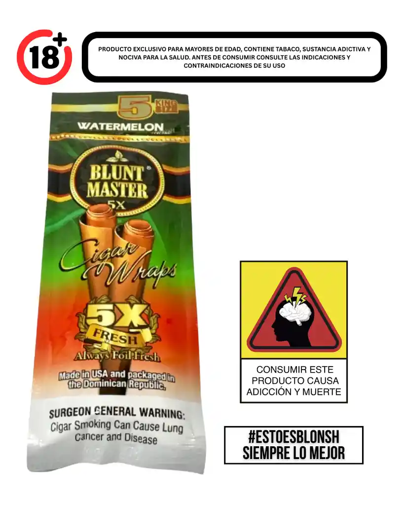 Es un envoltorio de papel laminado que contiene 5 papeles de tabaco, enrollados en forma de espiral, similar a los papeles de fumar, pero estos son más resistentes, con una combustión más lenta, uniforme y aromática, permitiendo una fusión perfecta entre tu tabaco favorito, combinado con el delicioso sabor exótico de tu elección, logrando hacer tu experiencia inigualable. por esto y mas los BLUNT MASTER uno de los papeles de blunt mas finos y deliciosos del mercado. Este producto puede ser utilizado para productos que contienen nicotina o tabaco. El tabaco y la nicotina son nocivos para la salud. Ley 30 de 1986. Verificar condiciones de uso, indicaciones y contraindicaciones en la etiqueta. Prohibida la venta a menores de edad