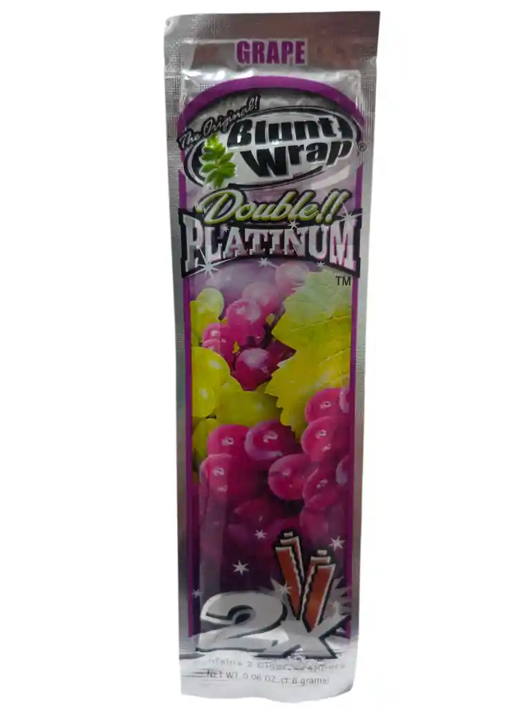 Blunt Wrap Grape – Platinum Un paquete de 2 blunt Wrap Platinum con sabor Grape, un toque dulce y frutal con aroma intenso a uva. Suavidad, buen quemado y un perfil aromático ideal para cualquier momento. Cantidad por paquete: 2 unidades.