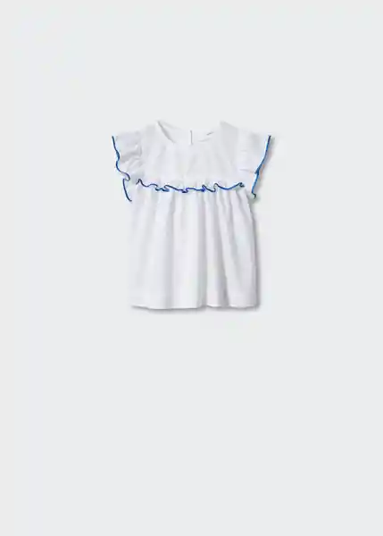 100% Algodón Cierre de Botones en la Parte Posterior Cuello Redondo Detalle de Volante Manga Corta Volantes en Las Mangas - 47085934_01.