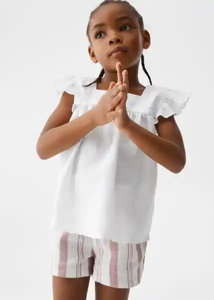 Cierre de Botones Cuello Cuadrado Detalle Plisado Manga Corta Manga Corta Volante Tejido Mezcla de Algodón y Lino - 47065953_01.
