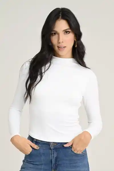 En Tejido de Punto Penélope Cuello Alto Manga Larga Silueta Ajustada.