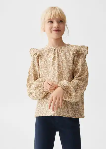 100% Algodón Cierre de Botón Diseño Recto Estampada Volantes en Los Hombros - 67033688_16.