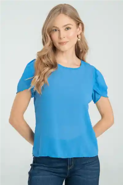 En Chifón Crepe Cuello Sesgado Redondo Manga Corta Pétalo Sobrepuesta.