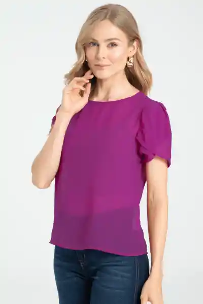 En Chifón Crepe Cuello Sesgado Redondo Manga Corta Pétalo Sobrepuesta.