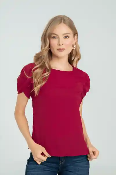 En Chifón Crepe Cuello Sesgado Redondo Manga Corta Pétalo Sobrepuesta.