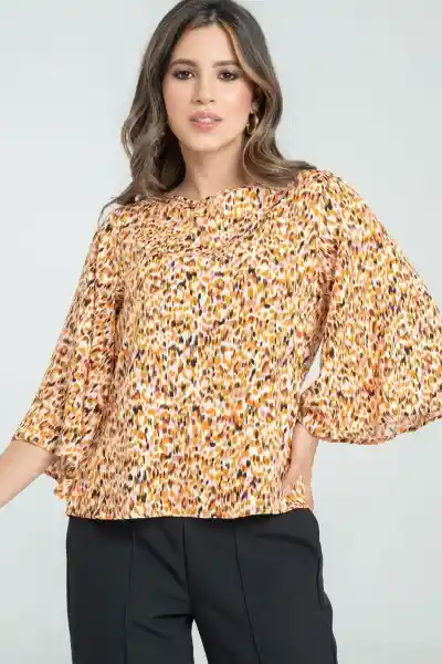 En Chalis Estampado Escote Redondo Manga 3/4 Campana Silueta Amplia Sesgo Amarre en Espalda.
